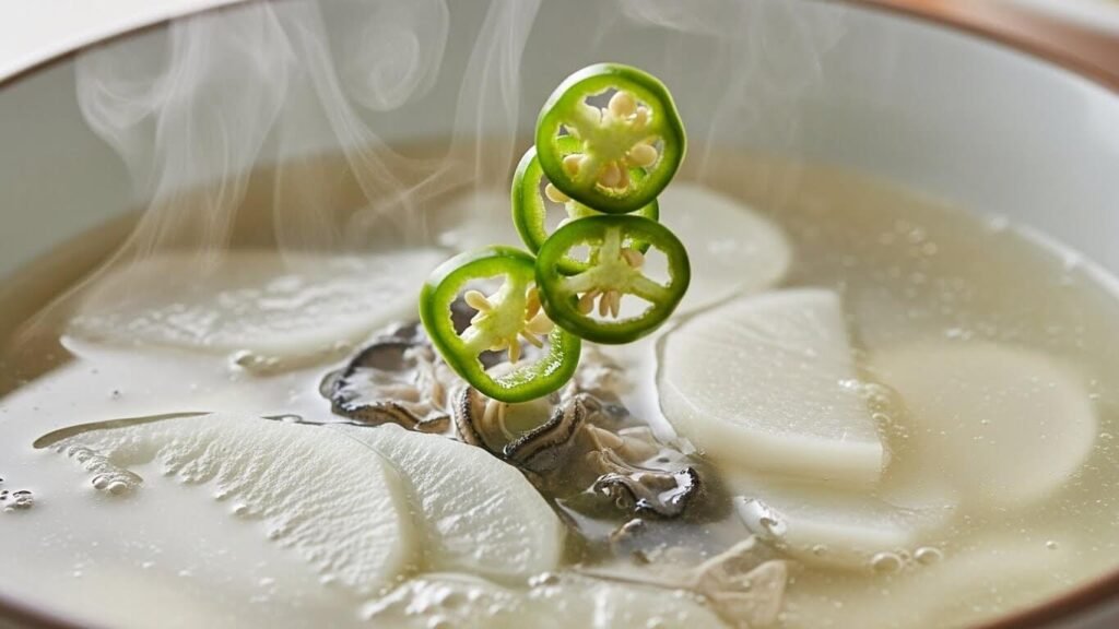 - 달큰한 시원함: 겨울 무는 ‘인삼보다 낫다’는 말이 있죠? 무를 도톰하게 썰어 넣으면 국물에 천연의 단맛이 우러나 깊은 맛을 완성합니다.