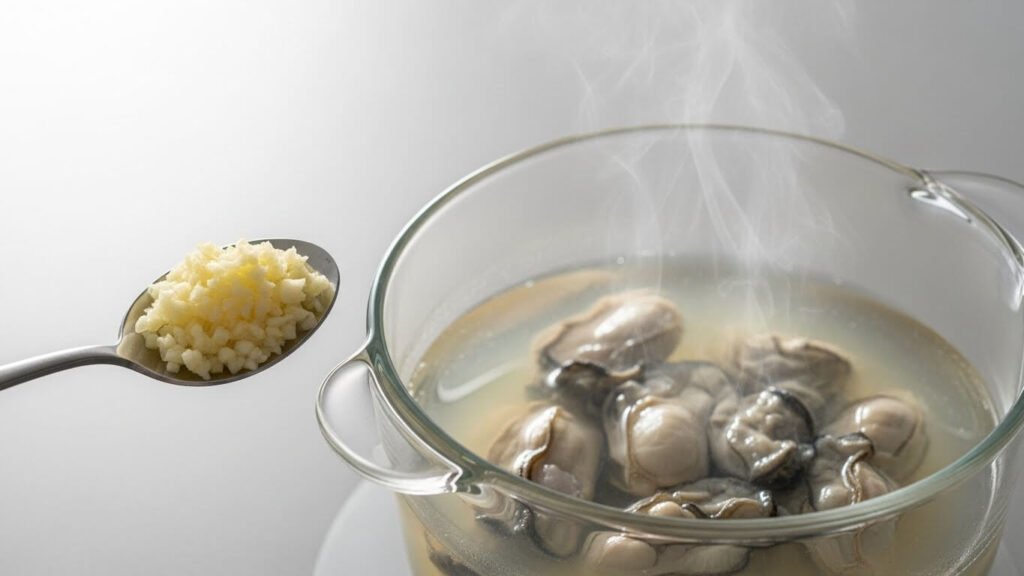 - 마늘을 너무 많이 넣으면 굴 특유의 향긋한 바다 향이 다 죽어버려요. 향만 살짝 돋우는 정도로만 넣어주세요.
