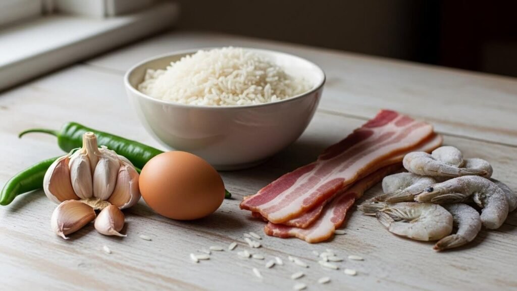 남은 밥, 반쯤 남은 햄, 냉동실에 굴러다니는 새우… 다 넣어도 맛있어요. 오히려 이것저것 섞일수록 풍미가 더 깊어져요!