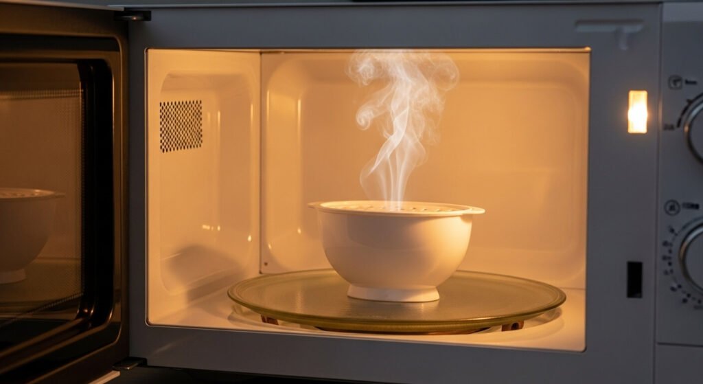 - 뚜껑 주의: 뚜껑을 덮되, 구멍이 있다면 열어두고 없으면 살짝 걸치듯 덮어주세요. (폭발 방지! 💣)