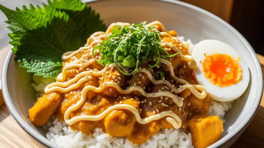 - 노란 카레색과 대비되는 초록색: 쪽파를 송송 썰거나 깻잎을 채 썰어 올려보세요.