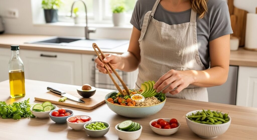 • 식감 살리기: 버섯이나 브로콜리처럼 많이 씹어야 하는 재료를 넣으면 뇌가 “아, 나 배부르다!”라고 더 빨리 인식해요.