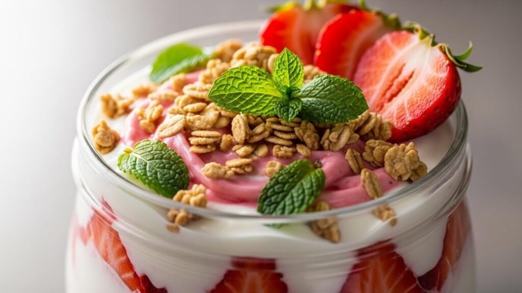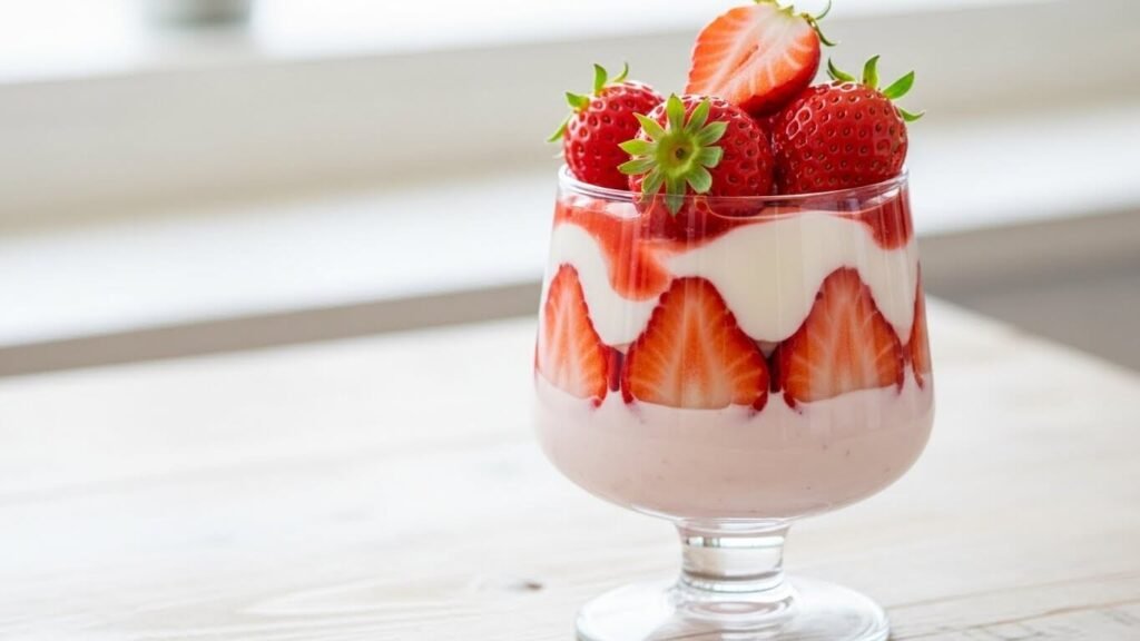 생크림이 없어서 아쉬울 거란 생각은 이제 넣어두세요! 오히려 딸기 본연의 향과 요거트의 깔끔함이 만나 더 완벽한 조화를 보여주니까요.