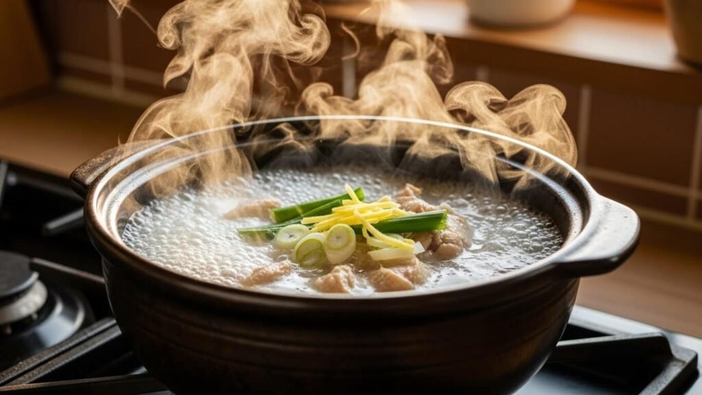 - 약불로 오래 끓이기 → 국물을 뽀얗게, 고기는 부드럽게 만드는 시간.