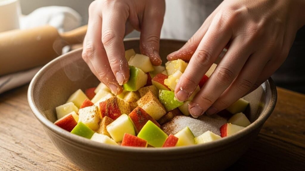 💡 이유는? 이렇게 하면 구울 때 사과가 촉촉하게 녹아내리면서 시나몬 향이 깊숙이 스며들어요!