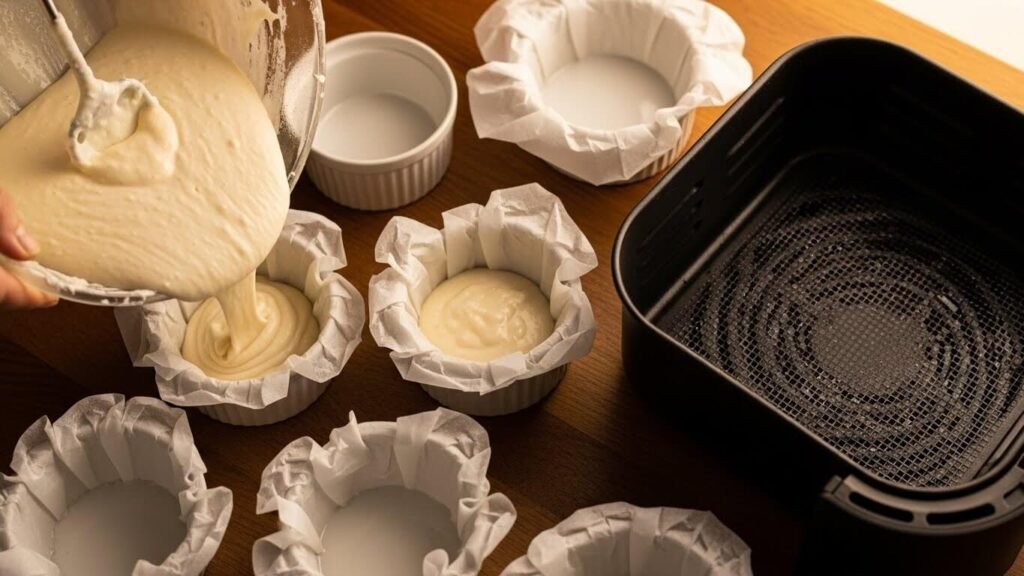 에어프라이어용 미니 바스크 케이크는 유산지만 잘 깔아주면 모양 잡기가 아주 쉬워요!