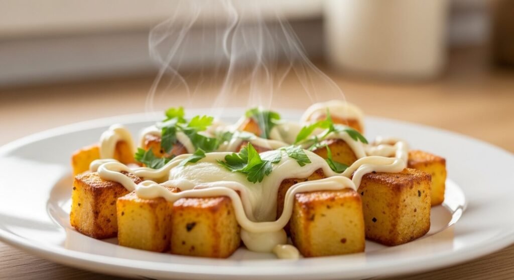 노란 치즈와 하얀 마요네즈가 어우러져 정말 먹음직스러운 비주얼이 탄생했네요. 한 입 먹어보면 부드러운 감자와 고소한 치즈가 입안에서 사르르 녹아내린답니다.