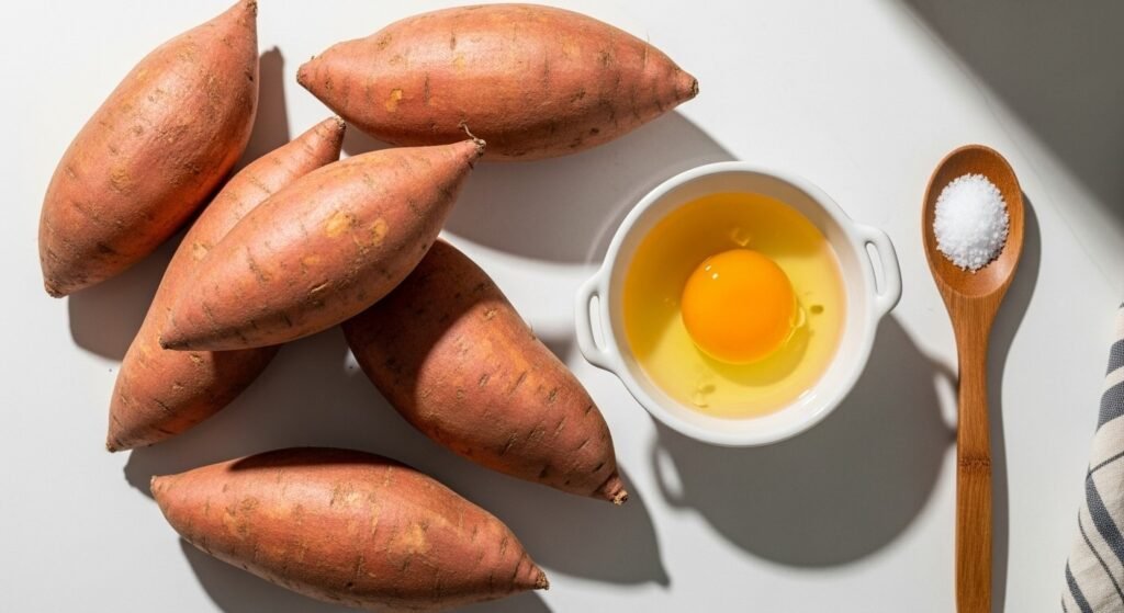 - 필수: 고구마(중간 크기 2개), 계란 1알, 소금 한 꼬집