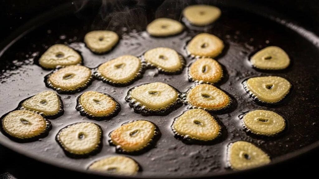 • 마늘이 노릇노릇 황금빛으로 변하기 시작할 때, 마늘 향이 최고조로 올라옵니다!