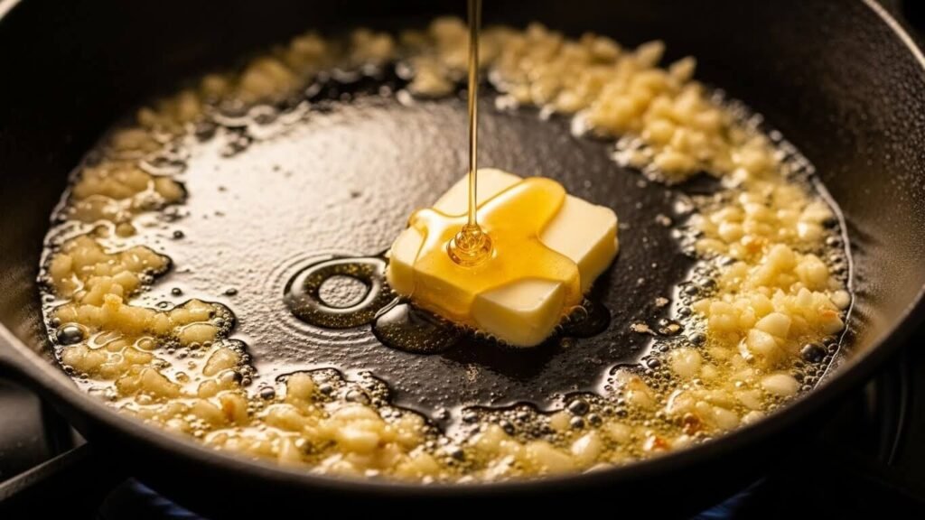🍯 5. 허니갈릭 버터 소스 만들기 (주방이 레스토랑으로 변신!)