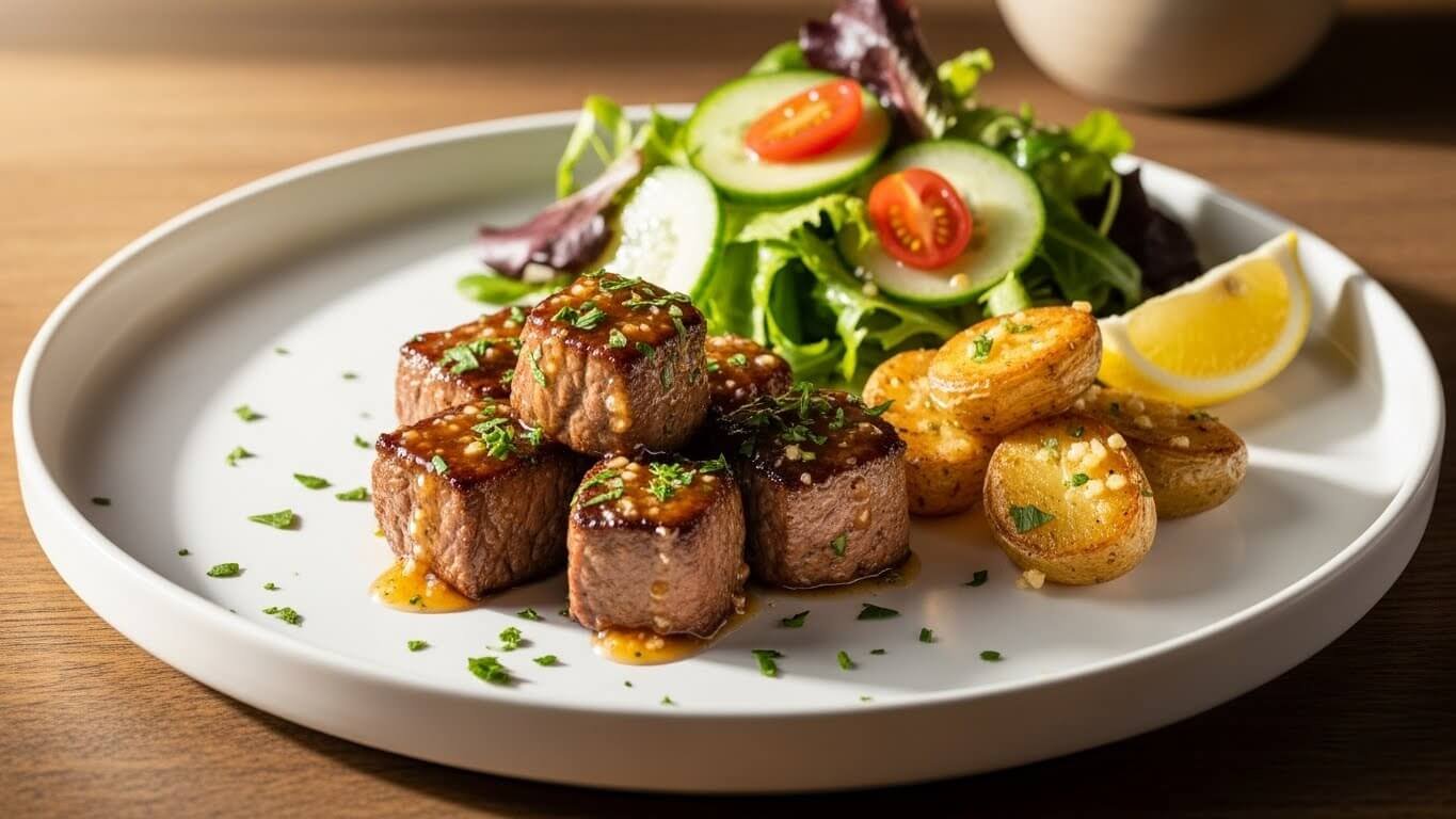 - 🥩 스테이크 바이트: 넓은 스테이크보다 더 빨리 익고, 한 입에 쏙 들어가기 때문에 육즙을 가두기도 쉽고 먹기도 편해요!