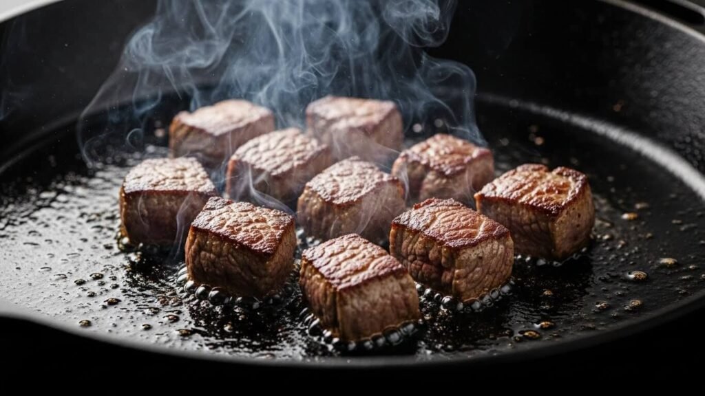 🔥 4. 스테이크 바이트 굽는 꿀팁 (불향 제대로 내기!)