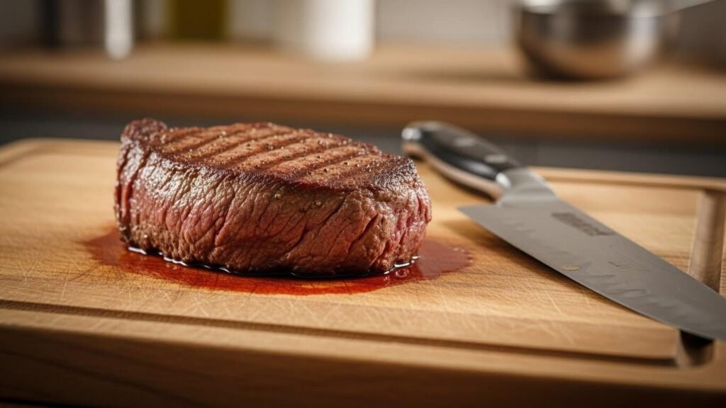 다 익은 고기는 잠시 접시에 옮겨두세요. 2~3분간 쉬게(Lesting) 해주면 육즙이 골고루 퍼져서 훨씬 부드러워져요. 이 단계를 건너뛰면 고기 썰 때 피가 흥건해질 수 있으니 주의!