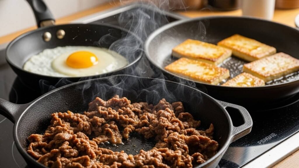 4️⃣ 🍳 메인 토핑, 단백질로 화룡점정!