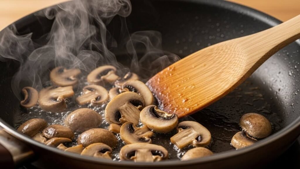 STEP 1. 버섯에서 ‘감칠맛’ 끌어올리기 팬을 달군 뒤 기름 대신 물을 2~3스푼 넣고 버섯을 먼저 볶아보세요. 버섯이 숨이 죽으면서 천연 감칠맛이 가득한 수분이 나옵니다. 이게 바로 요리의 깊은 맛을 결정해요!